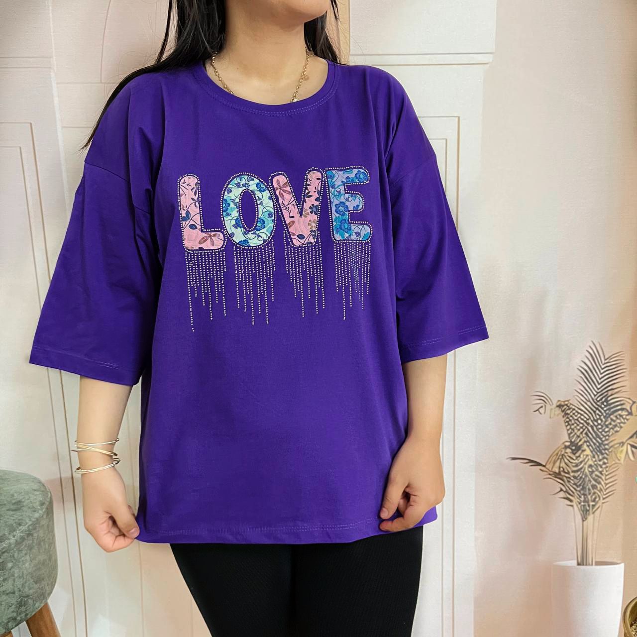 تیشرت باکسی مدل عشق نخ پنبه تیکه دوزی و نگین