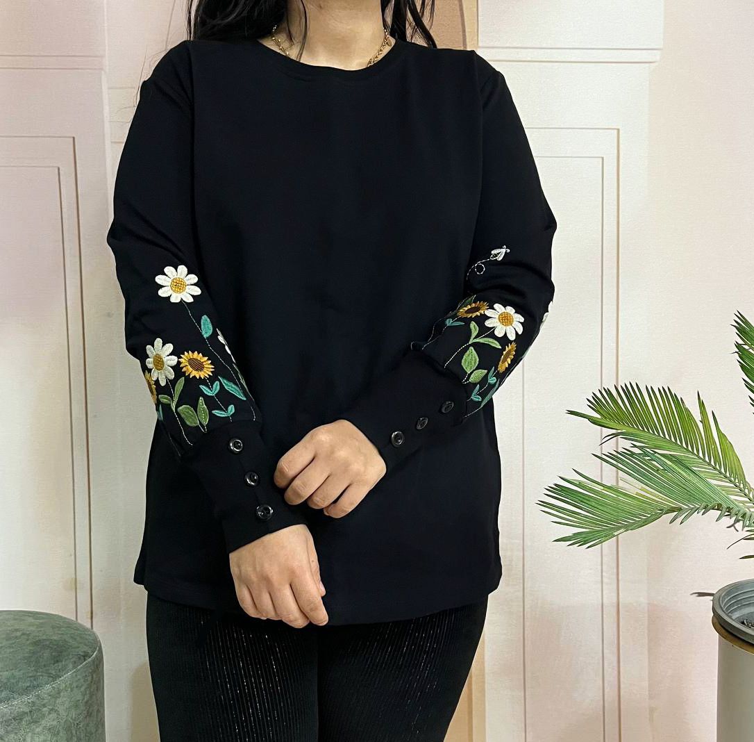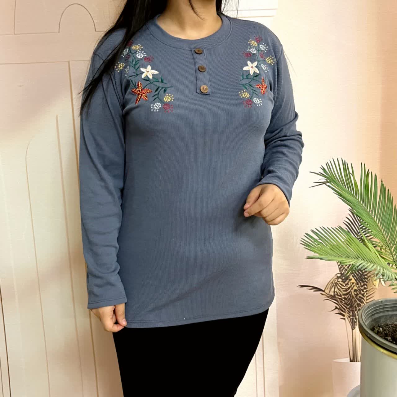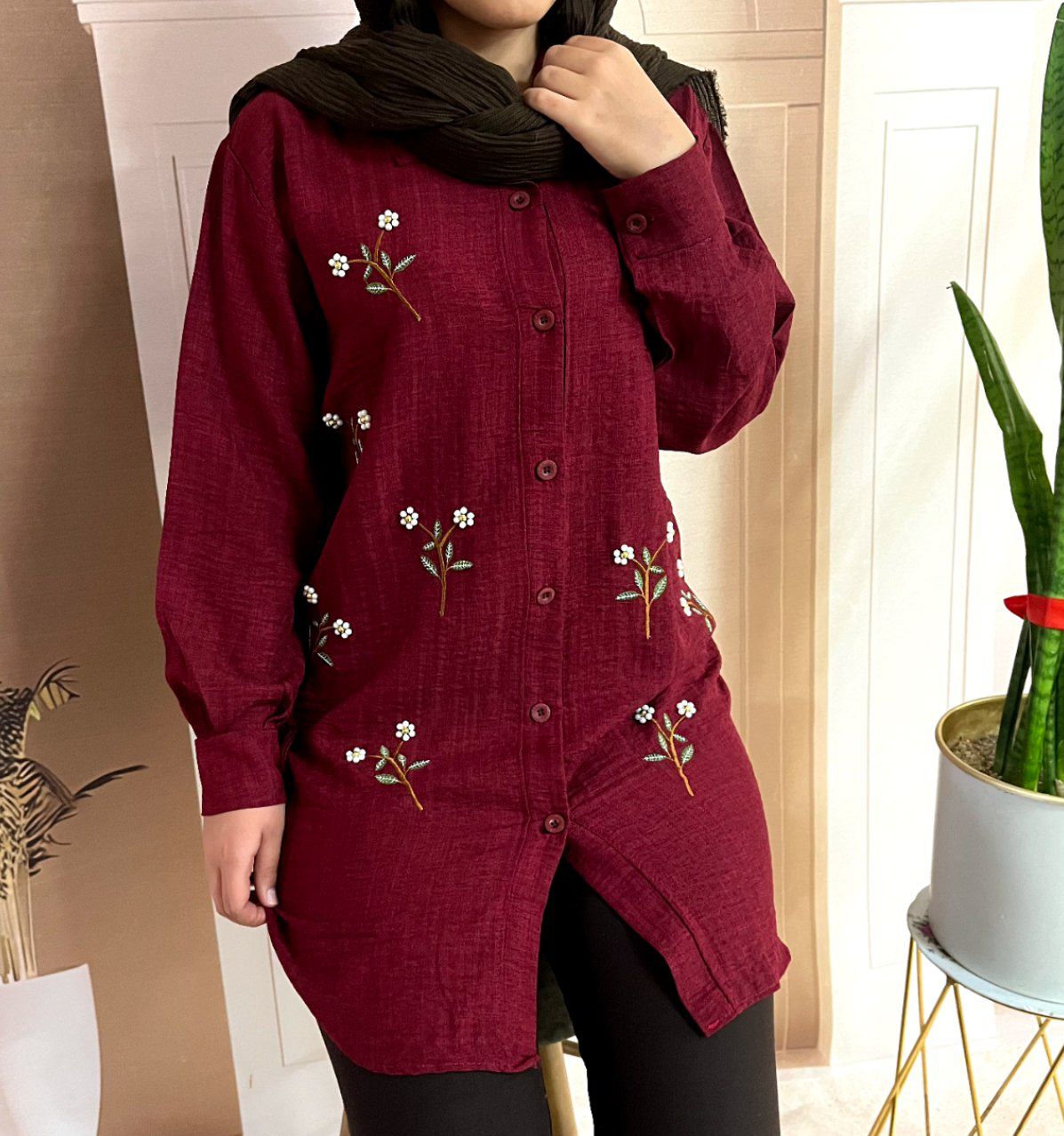 بلوز مدل ماهرخ دورس آستین سه دکمه گلدوزی