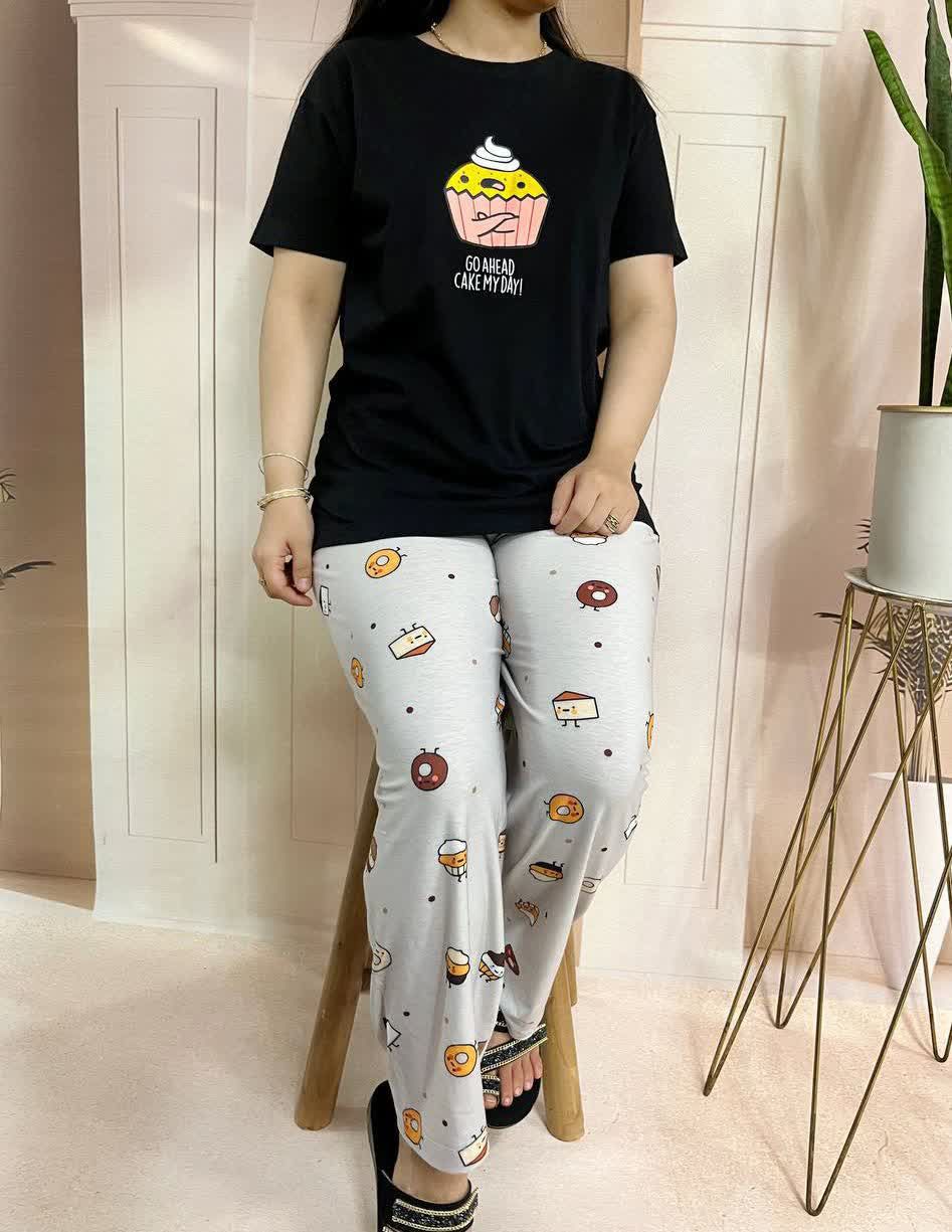 ست تیشرت و شلوار مدل بارون نخ پنبه چاپی