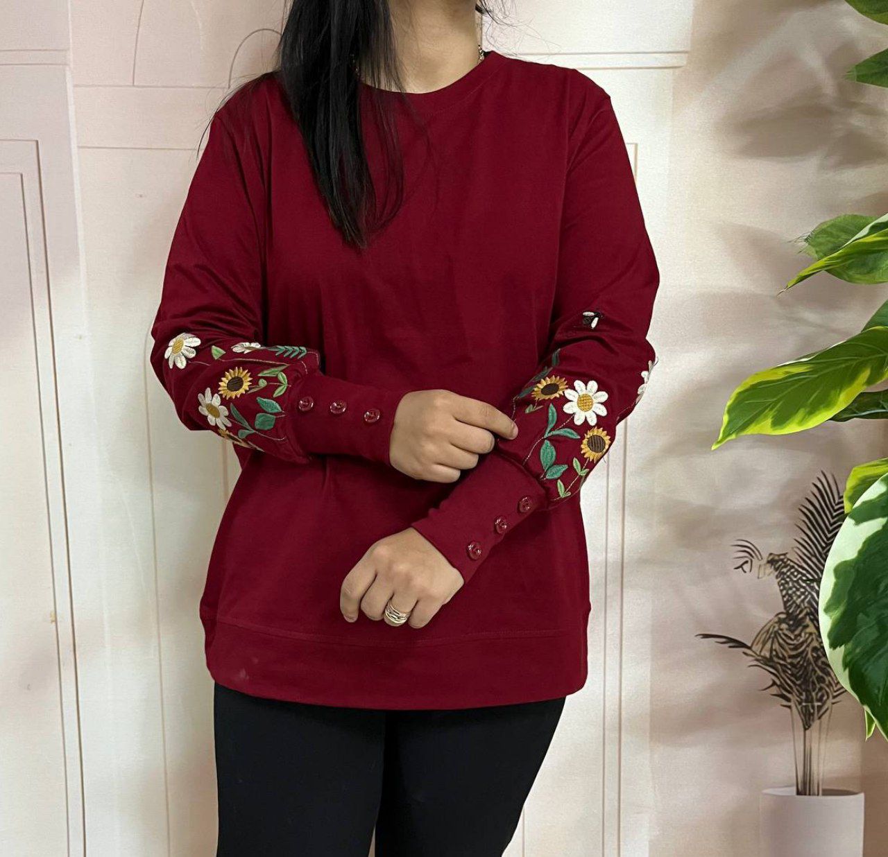 بلوز مدل ماهرخ دورس آستین سه دکمه گلدوزی