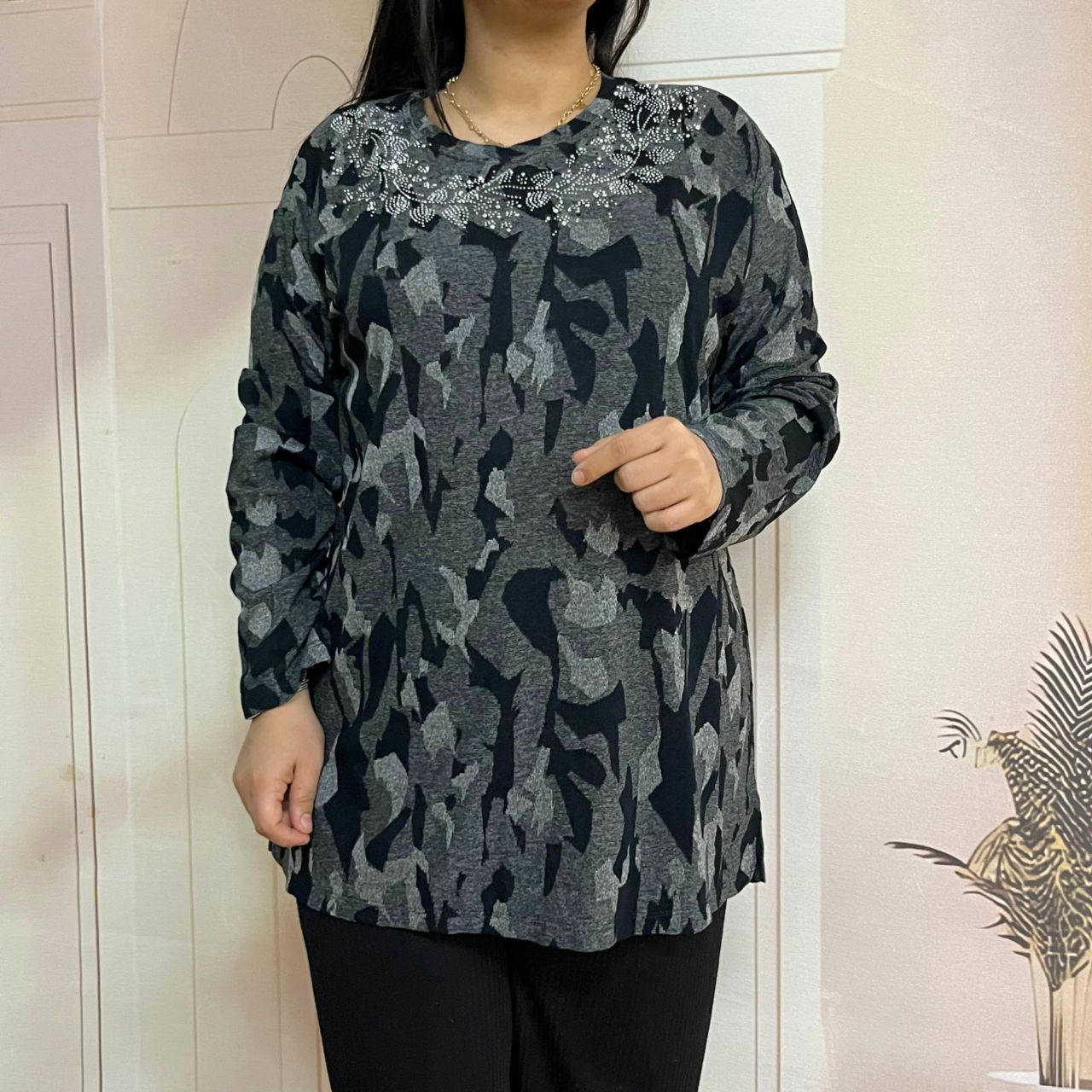 بلوز مدل خاتون ژاکارد ویسکوز نگین دار