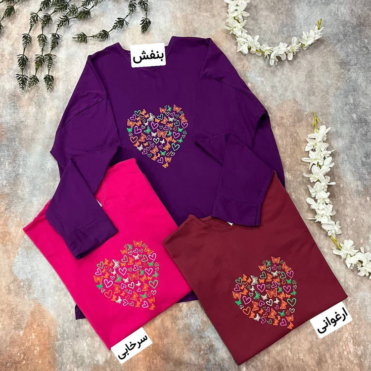 بلوز مدل قلب و پروانه نخ پنبه قواره بزرگ