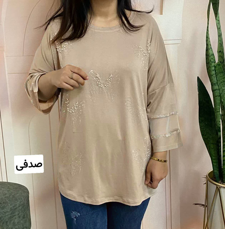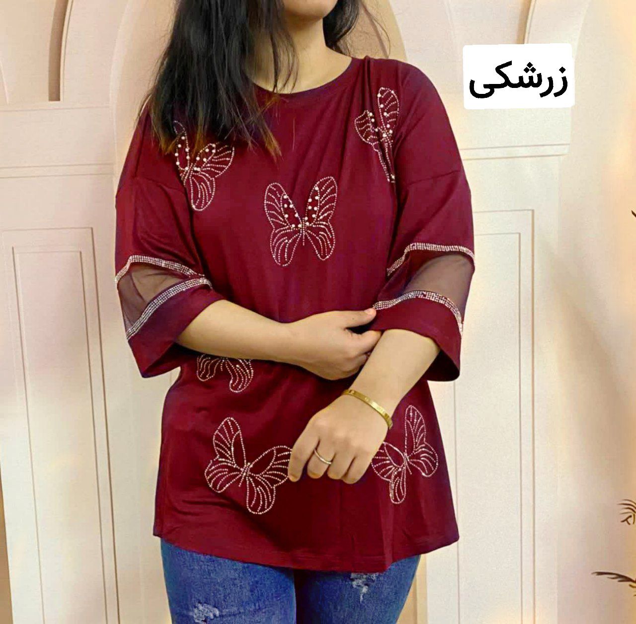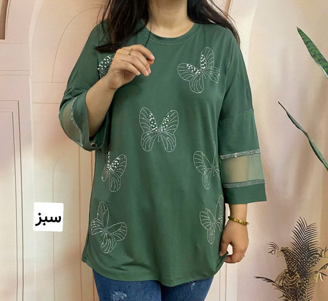 بلوز مدل پروانه ویسکوز نگین دار آستین سه ربع