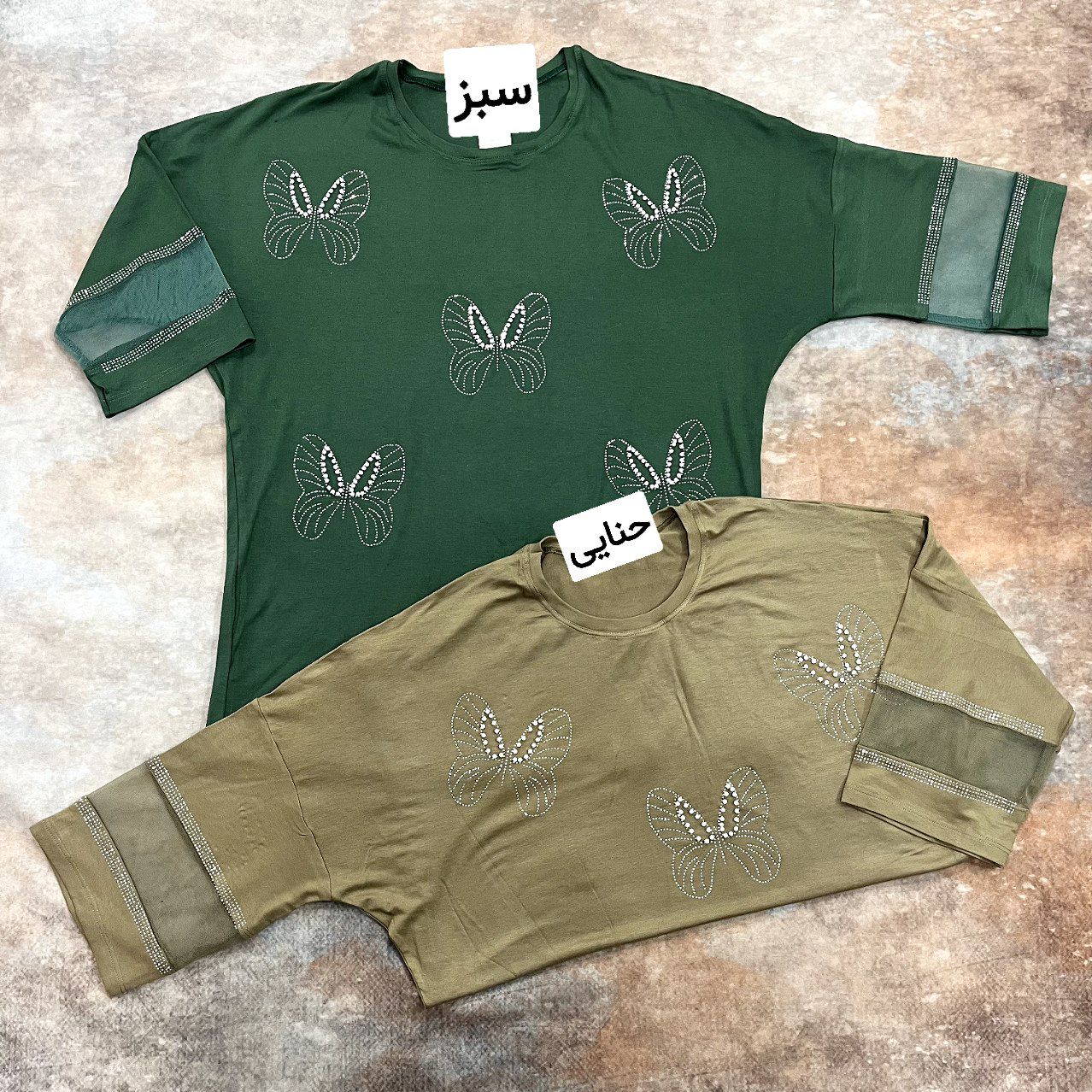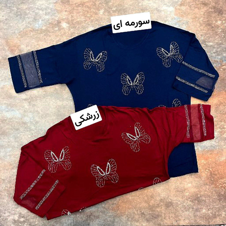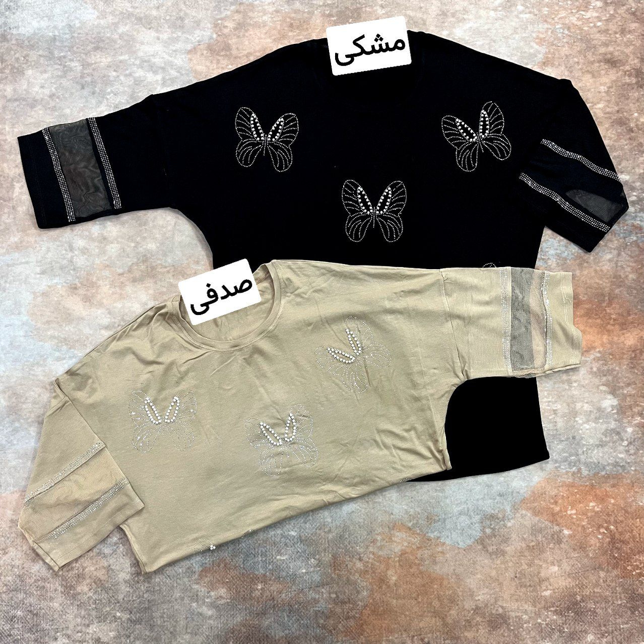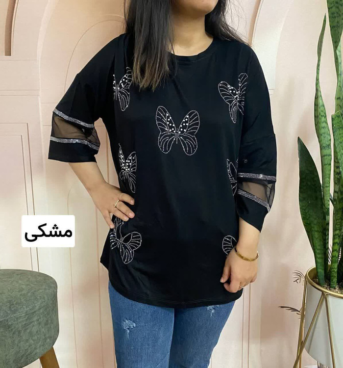 بلوز مدل پروانه ویسکوز نگین دار آستین سه ربع