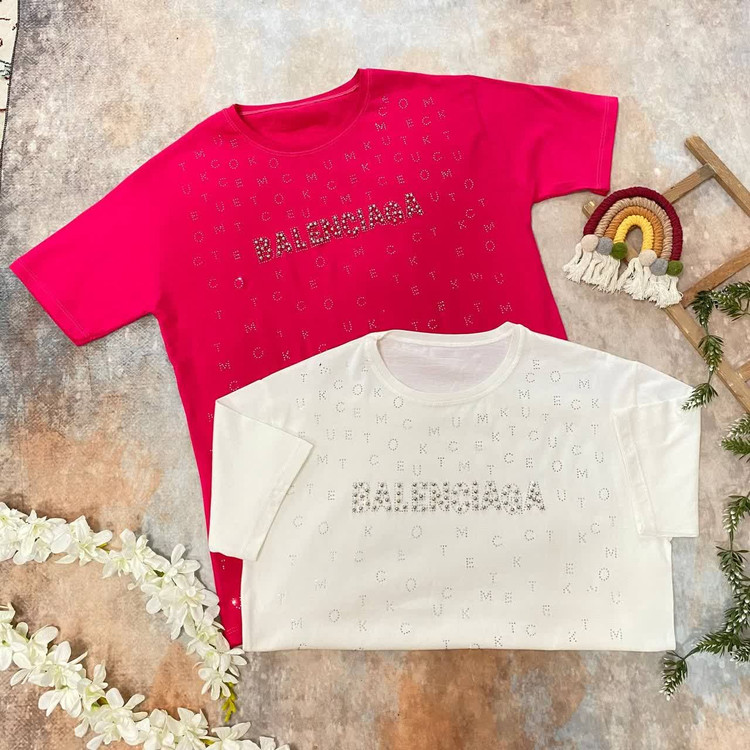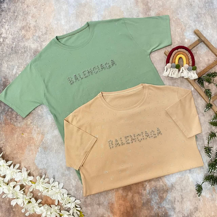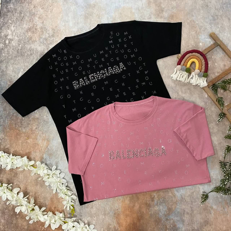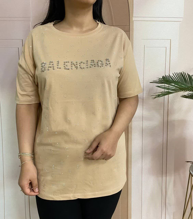 تیشرت زنانه مدل بالنسیاگا نخ پنبه تمام نگین