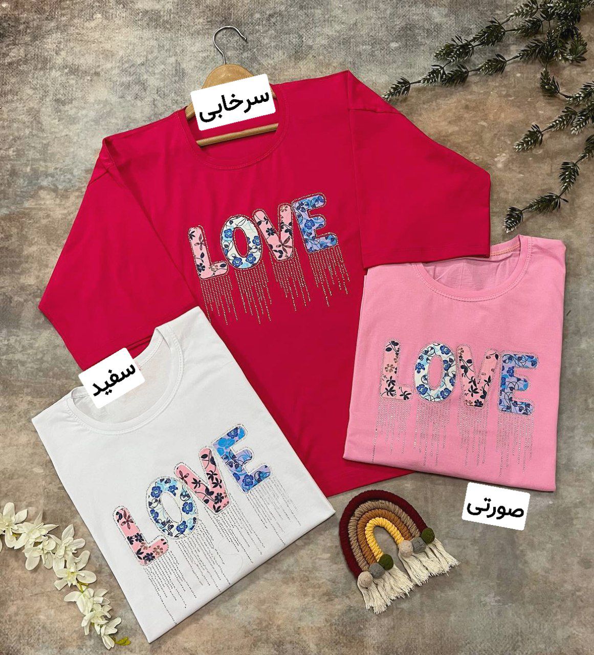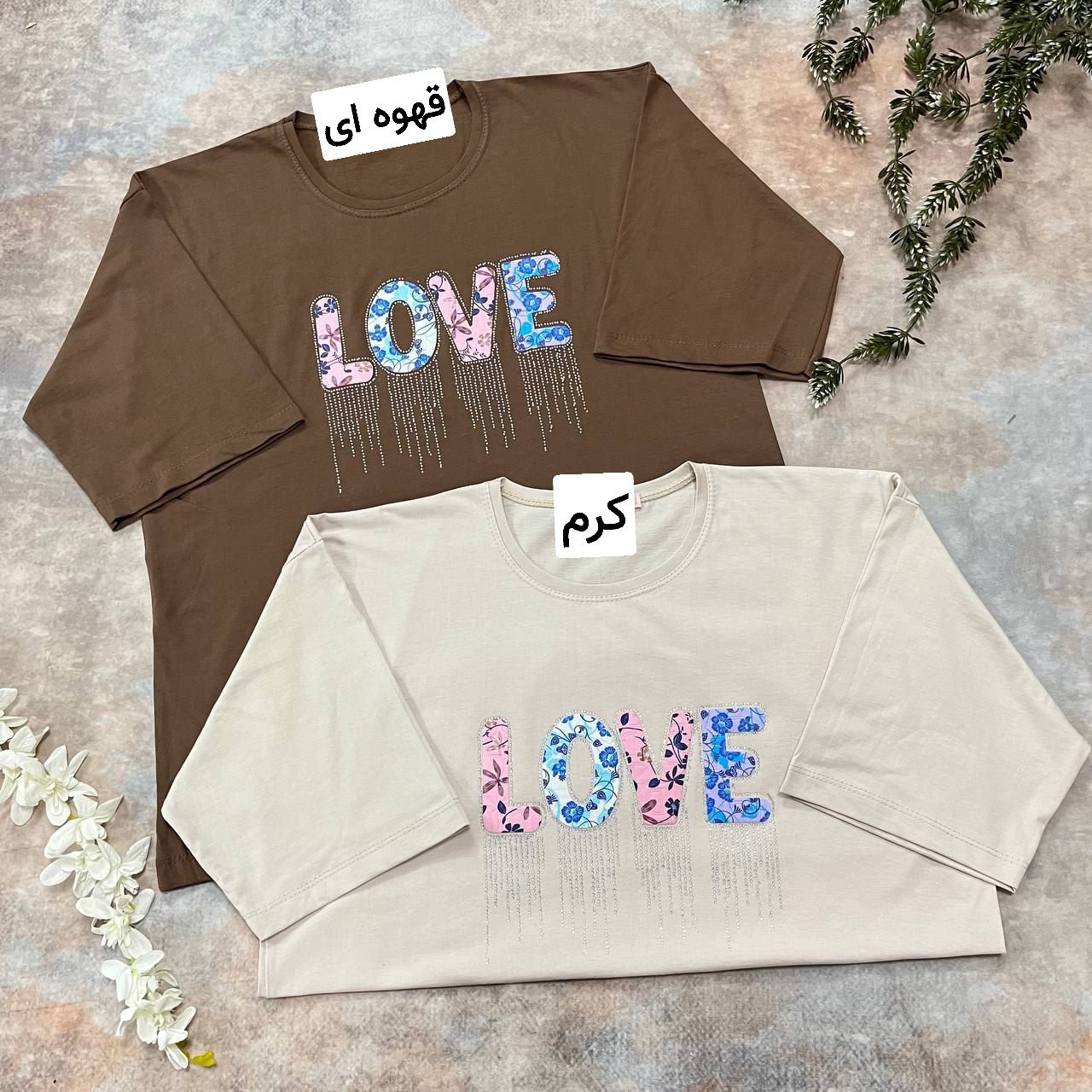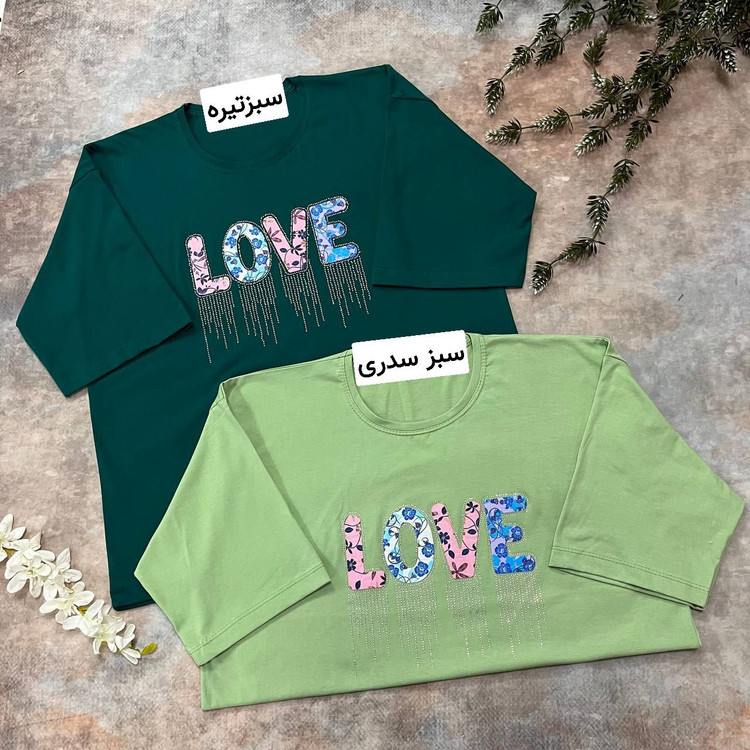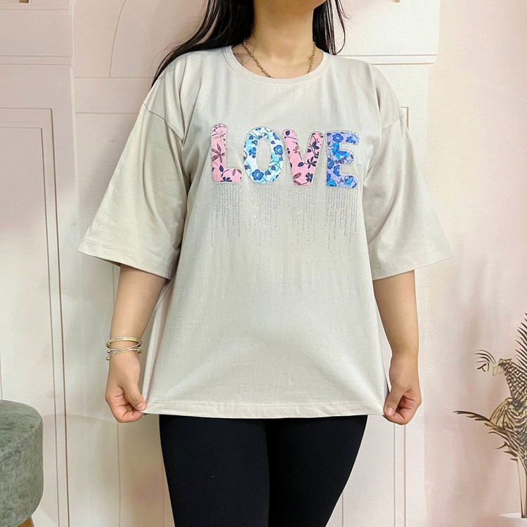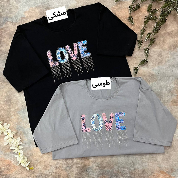 تیشرت باکسی مدل عشق نخ پنبه تیکه دوزی و نگین