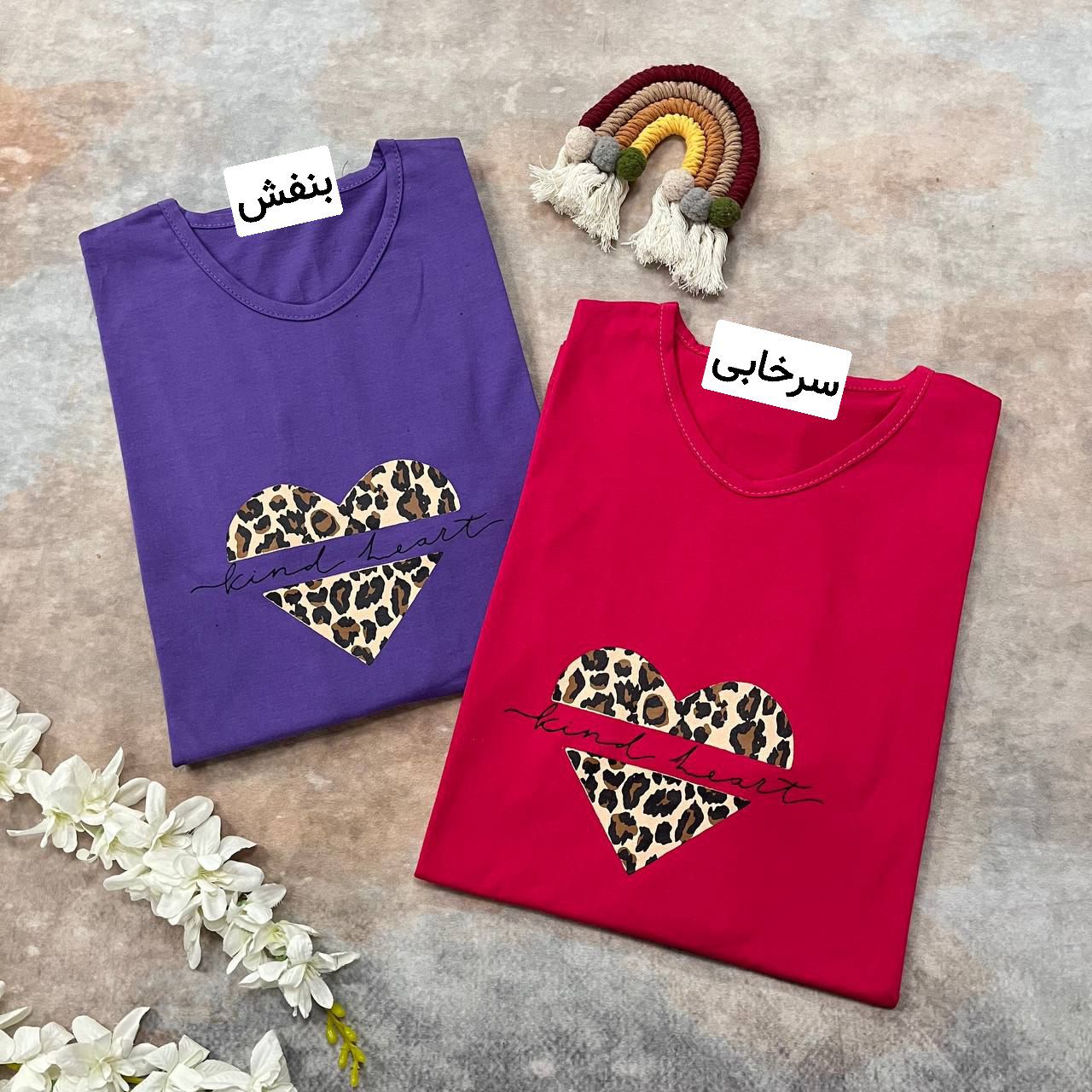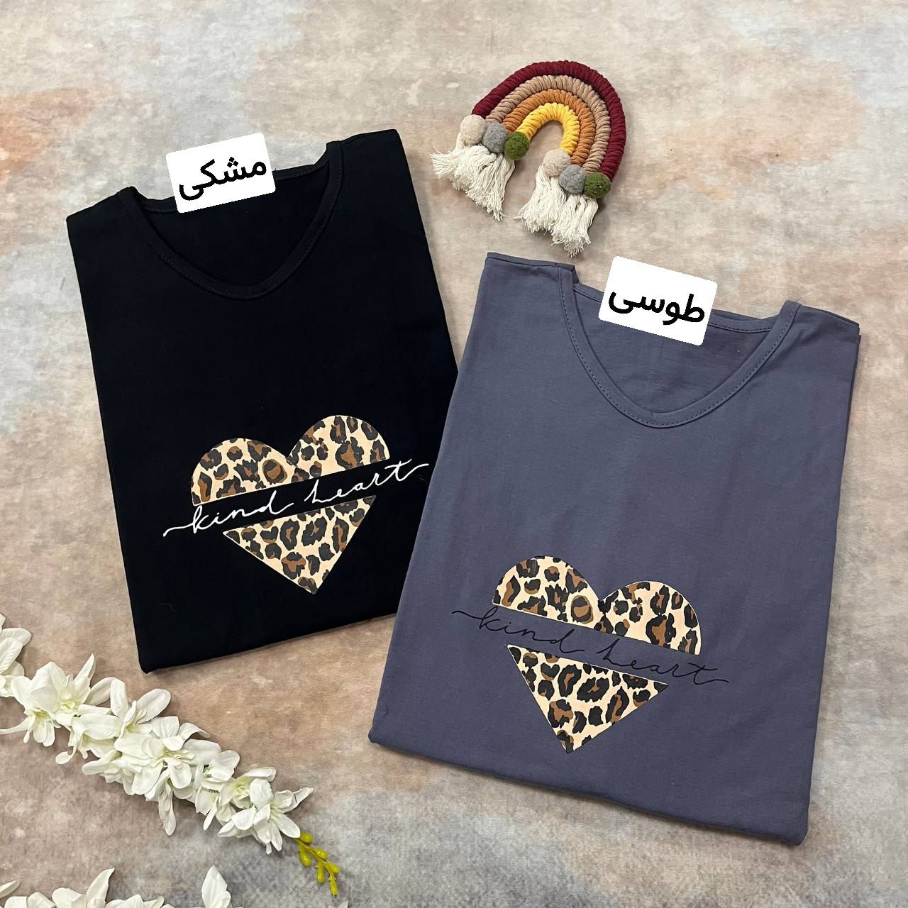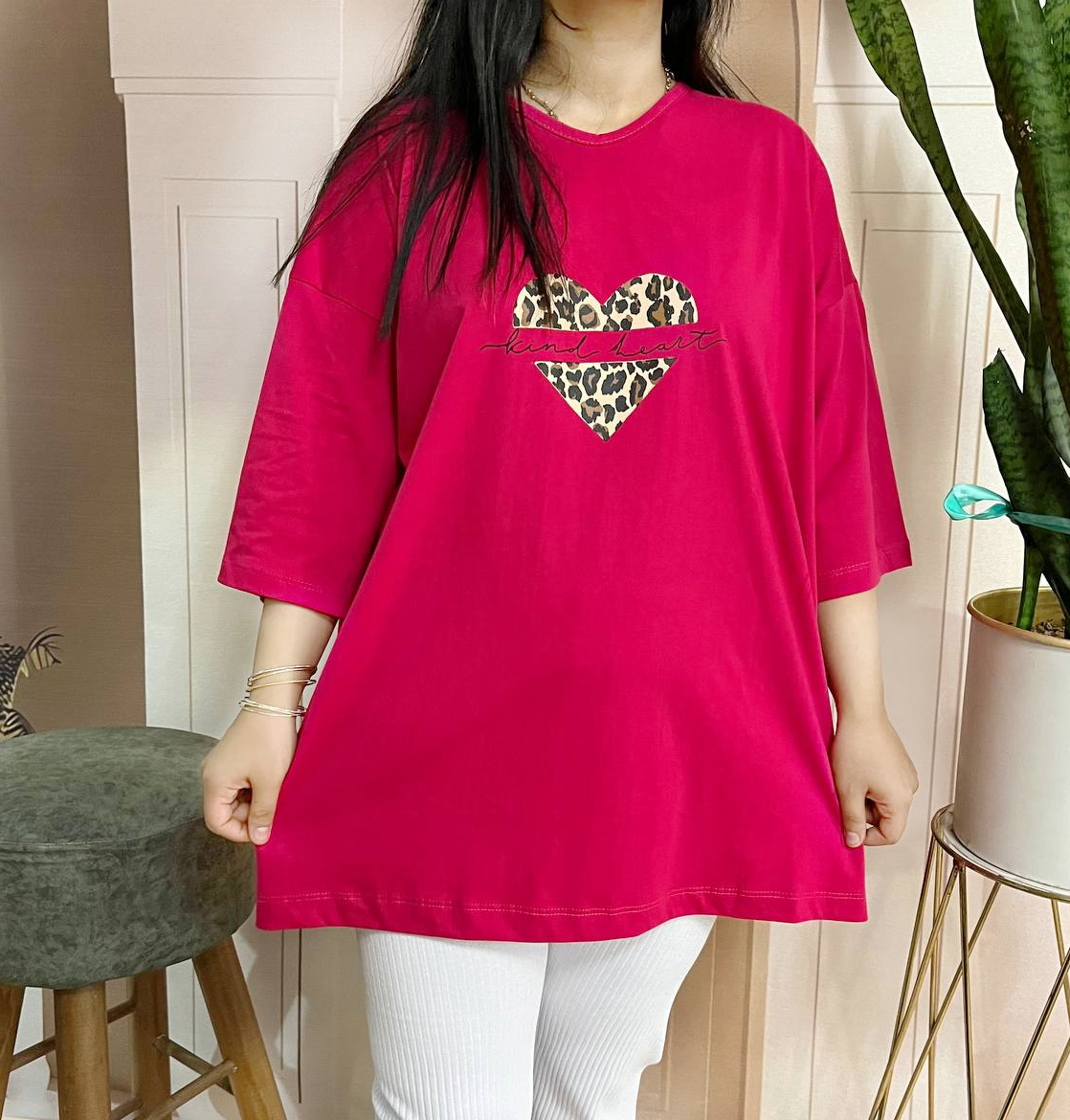 تیشرت مدل قلب پلنگی نخ پنبه قواره بزرگ